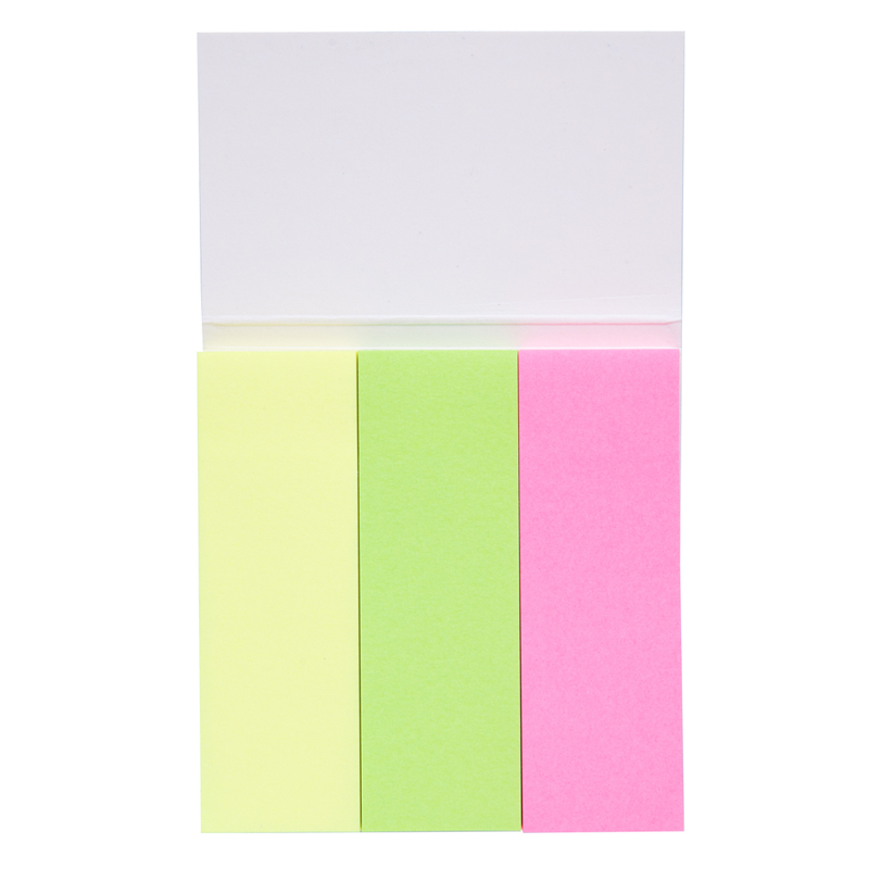 Набор бумажных клейких закладок неон. В упаковке 3 цвета по 50 листов каждого. Цвета: зеленый, розовый, желтый. Размеры: 76*25 мм. Закладки клейкие, могут служить пометками в документах, использоваться для записи краткой информации, для выделения текста. Легко удаляются, не оставляя следов и не повреждая бумагу. Клейкость: акриловая эмульсия на водной основе 21 Н/м.