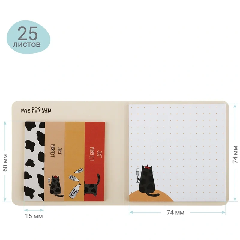 Флажки-закладки и самоклеящиеся блоки в наборе MESHU 'Right cat', 74*74мм, 60*15мм, 25л., европодвес