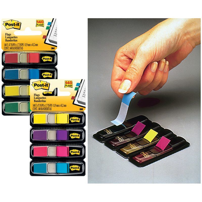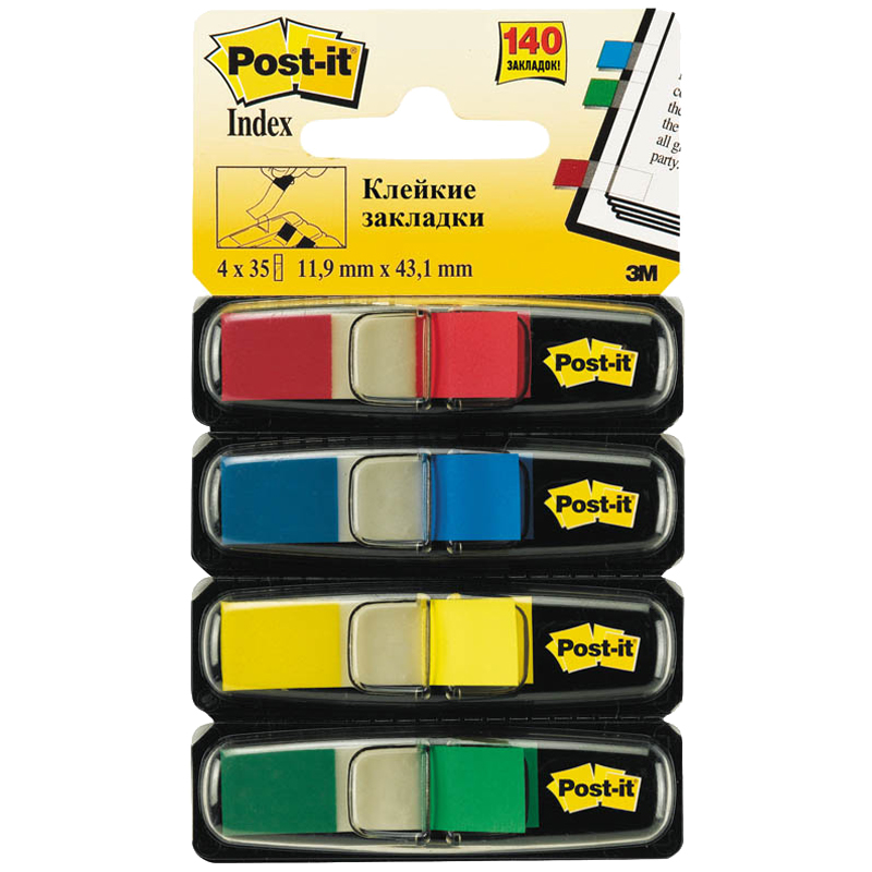 Флажки-закладки Post-it, 45*12мм, 35л*4 цвета, в индивидуальных диспенсерах