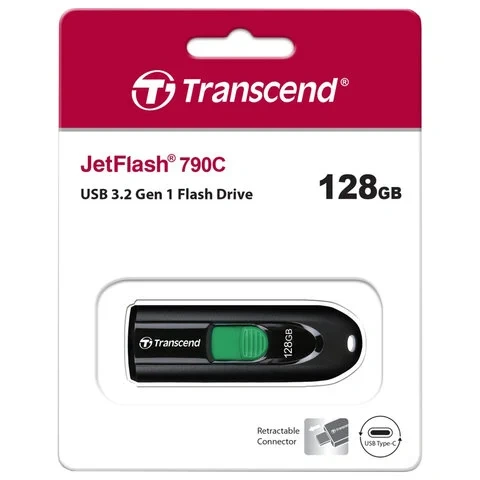 Флеш-диск 128GB TRANSCEND JetFlash 790C, разъем USB Type-С, черный/зеленый, TS128GJF790C
