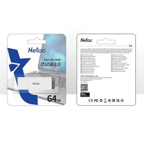 Флеш-диск 64 GB NETAC U185, USB 2.0, белый, NT03U185N-064G-20WH