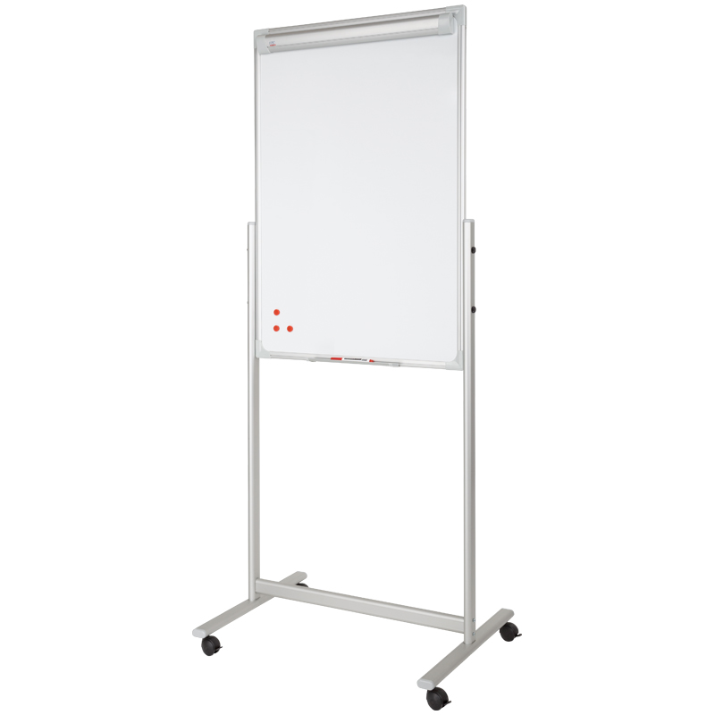 Флипчарт передвижной с двумя магнитно-маркерными поверхностями. Оборудован универсальной системой крепления бумажного блока, а также полочкой для аксессуаров с двух сторон.