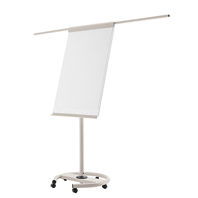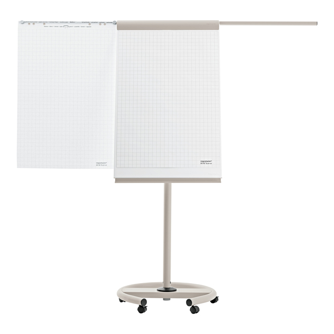Вместо обычных ножек, у этого флипчарта круглое основание с 5-ю колесиками, 3 из которых являются блокируемыми. Хотя его основание занимает площадь всего 65x65 см, флипчарт очень устойчивый и позволяет Вам легко передвигаться в желаемую позицию на презентациях, семинарах, конференциях и т.п.