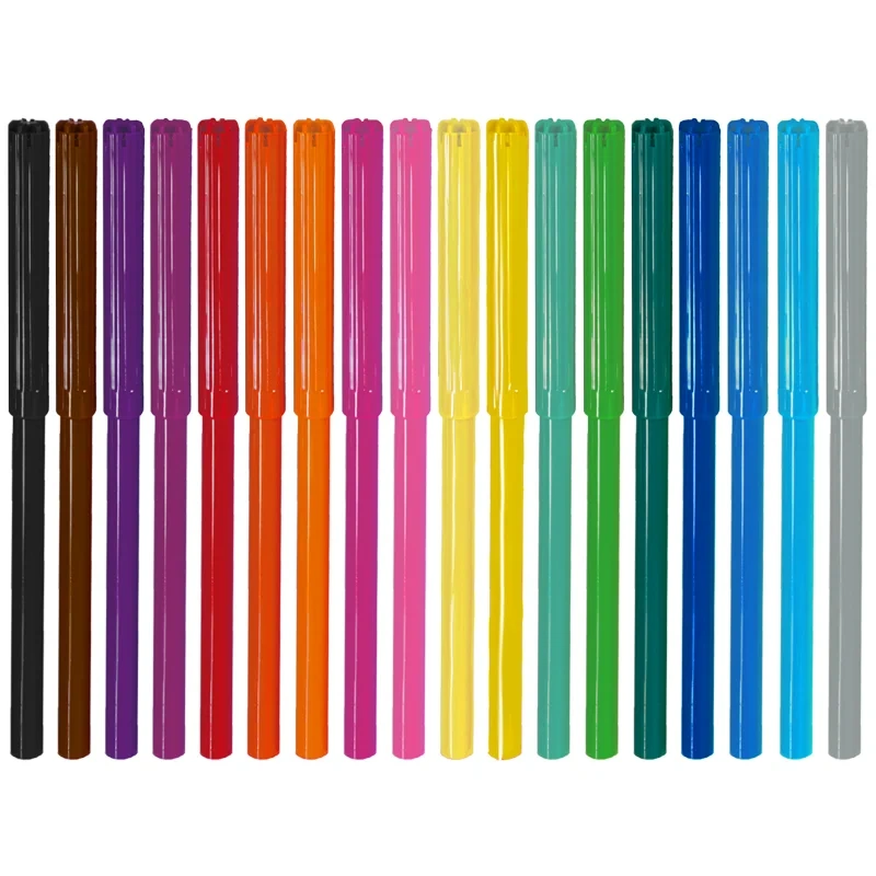 Набор фломастеров. 18 ярких цветов. Вентилируемый колпачок, смываемые чернила на водной основе. Упакованы в картонную коробку с подвесом.