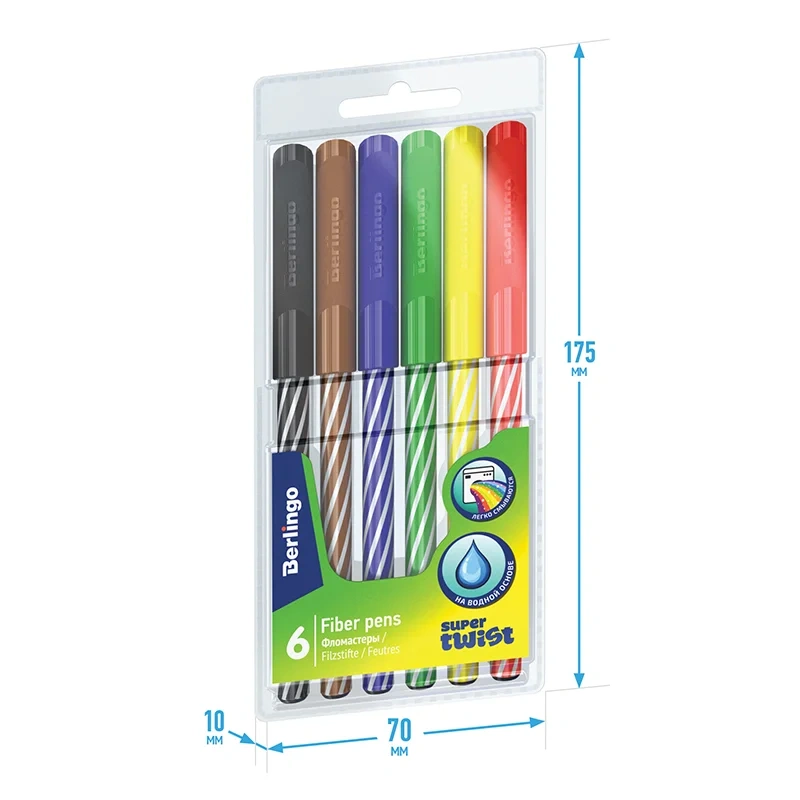 Фломастеры для рисования Berlingo SuperTwist 6 цветов, смываемые