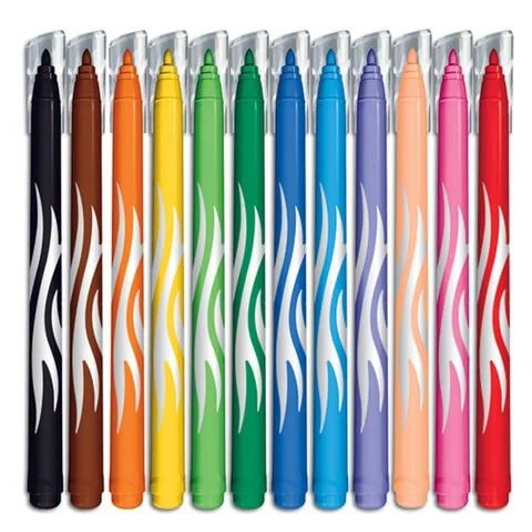 Классическая округлая форма. Насыщенные цвета для ярких и привлекательных рисунков. Смываемые чернила: удаляются с кожи и с большинства поверхностей обычными моющими средствами. Диаметр заблокированного пулевидного наконечника - 2,8 мм. Увеличенный ресурс: длина письма - 200 м.
