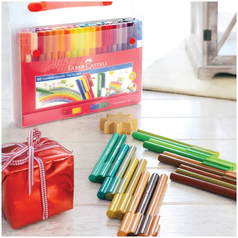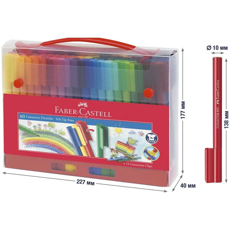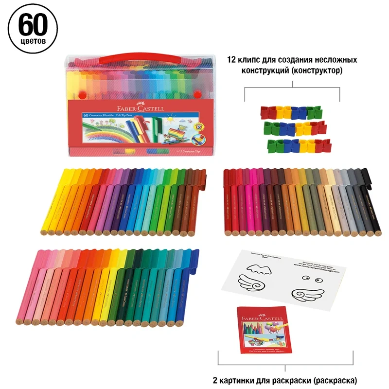 Фломастеры Faber-Castell 'Connector', 60цв., смываемые, соединяемые колпачки, пластик. уп., европодв