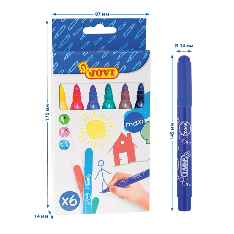 Фломастеры JOVI, 06цв., утолщенные, смываемые, картон, европодвес