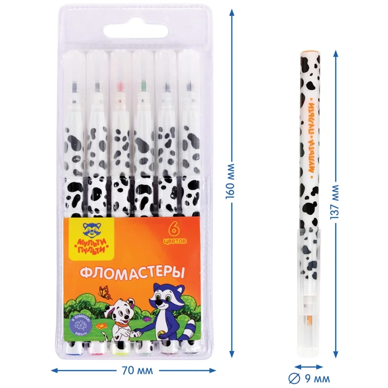 Фломастеры Мульти-Пульти 'Енот и далматинцы', 06цв., смываемые, блистер
