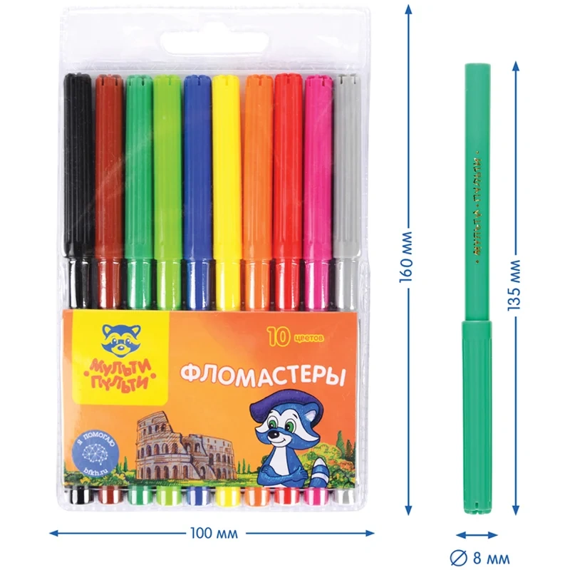 Фломастеры Мульти-Пульти 'Енот в Италии', 10цв., смываемые, блистер