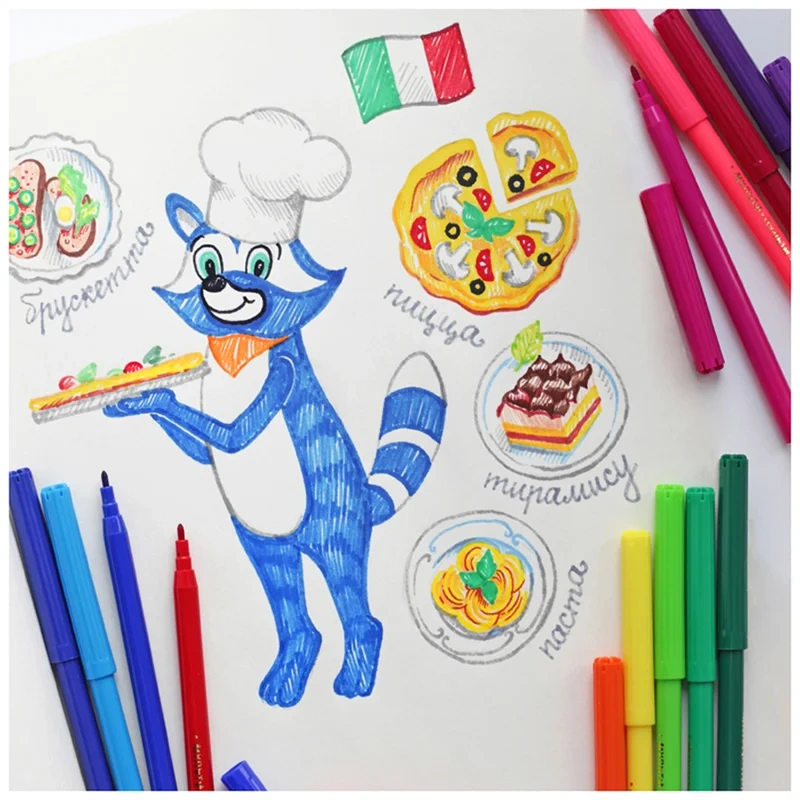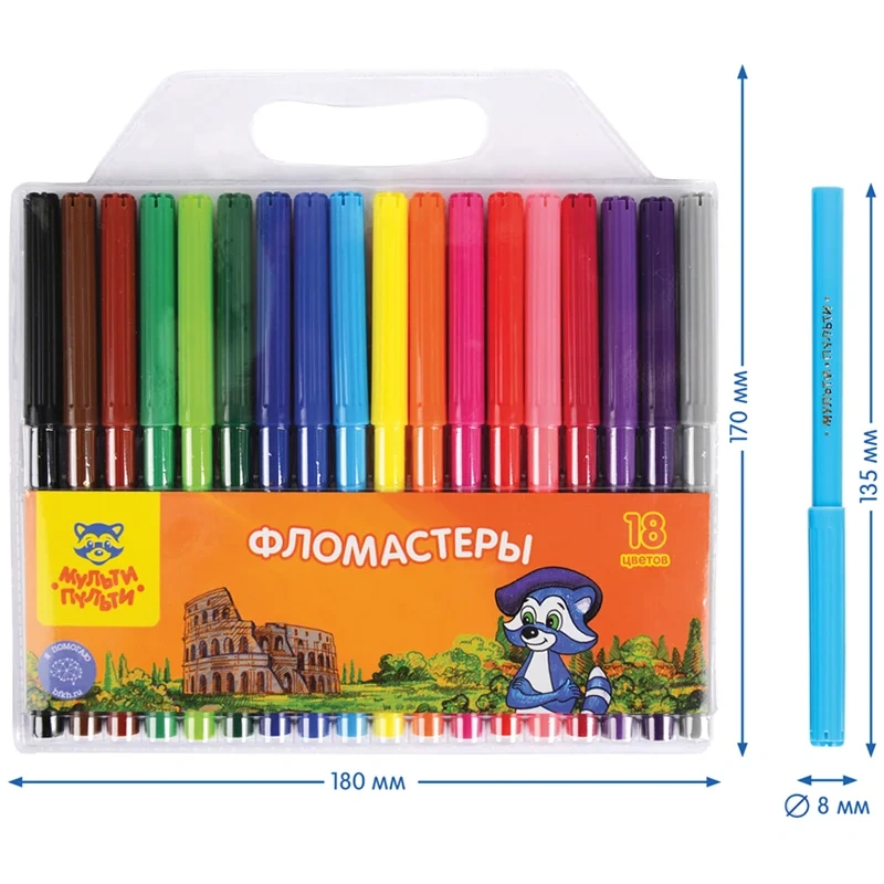 Фломастеры Мульти-Пульти 'Енот в Италии', 18цв., смываемые, блистер