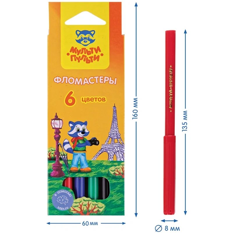 Фломастеры Мульти-Пульти 'Енот во Франции', 06цв., смываемые, картон, европодвес