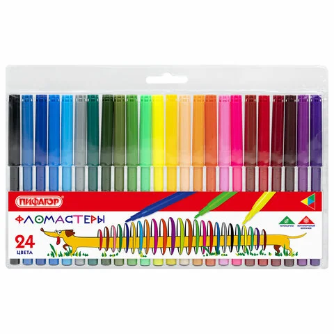 Фломастеры для рисования Пифагор Веселая такса 24 цвета, вентилируемый колпачок