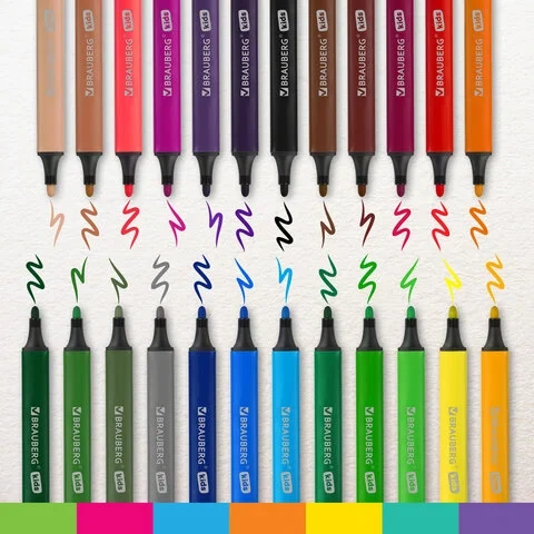 Набор из 24 фломастеров в пластиковом кейсе с удобной ручкой и надежными защелками. Фломастеры размещены в отдельных ячейках кейса, которые препятствуют их выпадению. Трехгранные утолщенные фломастеры из пластика длиной 128 мм и диаметром 12 мм. Круглый наконечник из фетра с линией письма 1-3 мм удобен для рисования и раскрашивания. Длина письма составляет 350 м: такого расхода хватит надолго. Фломастеры изготовлены на водной основе, поэтому они безопасны и легко смываются с большинства материалов и кожи. Наконечник устойчив к продавливанию, не проваливается внутрь корпуса. Колпачок имеет специальные прорези для вентиляции, которые способствуют прохождению воздуха при попадании в дыхательные пути малыша. Рекомендованы для детей от 3-х лет.