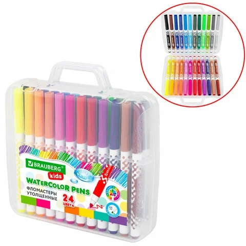 Фломастеры в портфельчике утолщенные 24 цвета, вентилируемый колпачок, BRAUBERG KIDS, 152186