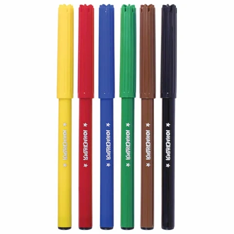 Обладают яркими насыщенными цветами в количестве 6 штук. Удобная круглая форма корпуса, длина которого 139 мм, а диаметр - 8,5 мм. Благодаря толщине линии письма 1 мм и диаметру пишущего узла 2,1 мм процесс раскрашивания становится легким. Длина письма составляет 600 м: такого расхода хватит надолго. Фломастеры изготовлены на водной основе, поэтому они безопасны и легко смываются с большинства материалов и кожи. Наконечник, устойчивый к продавливанию, не проваливается внутрь корпуса и не деформируется даже при сильном нажатии. Полипропиленовый корпус значительно продлевает срок службы фломастеров. Колпачок имеет специальные прорези для вентиляции, которые способствуют прохождению воздуха при попадании в дыхательные пути малыша. Рекомендованы для детей от 3-х лет.