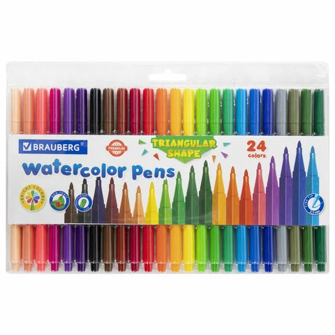 Фломастеры трехгранные 24 цвета, вентилируемый колпачок, BRAUBERG 'PREMIUM', ПВХ-упаковка, 152194