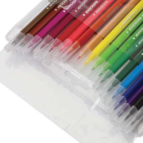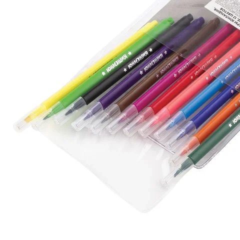 Фломастеры двусторонние с кистью 12 цветов (кисть/классический), СУПЕРКЕЙС, BRAUBERG KIDS, 152188