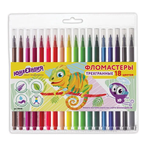 Фломастеры для рисования Юнландия Зоопарк 18 цветов, трехгранные, вентилируемый колпачок