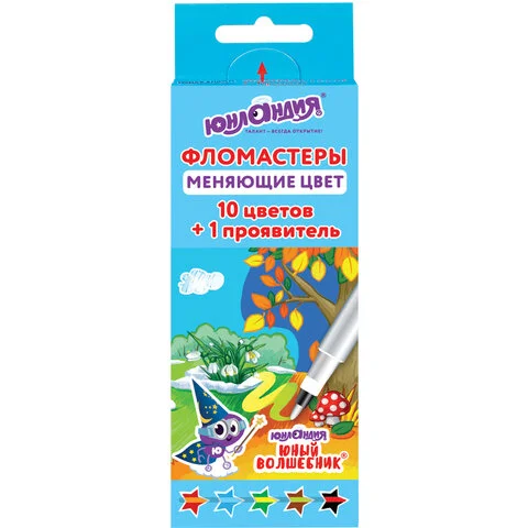 Фломастеры, меняющие цвет ЮНЛАНДИЯ 10 цветов + 2 проявителя, 'ЮНЫЙ ВОЛШЕБНИК', вентилируемый колпачо