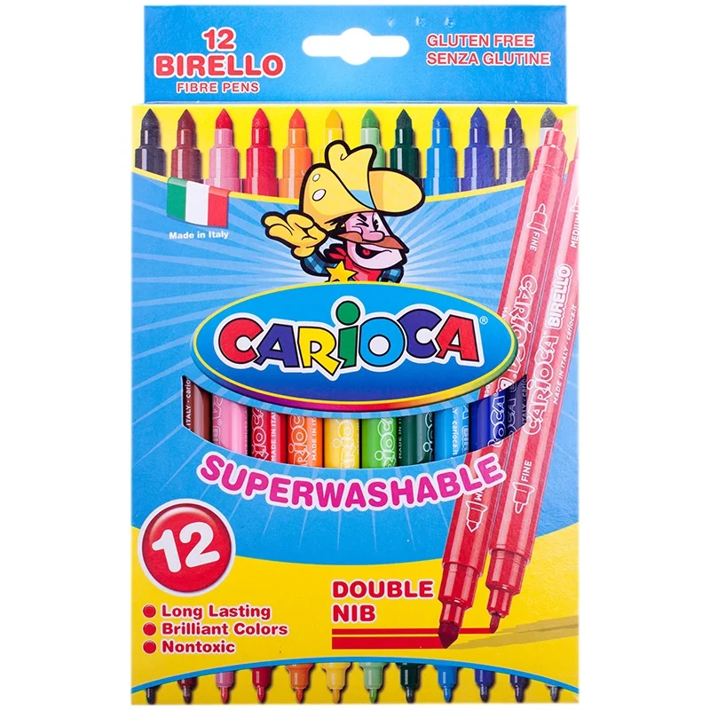 Фломастеры для рисования Universal Birello 12 цветов, двухсторонние, смываемые