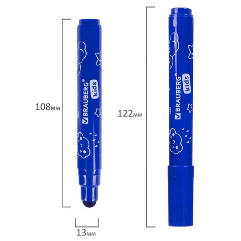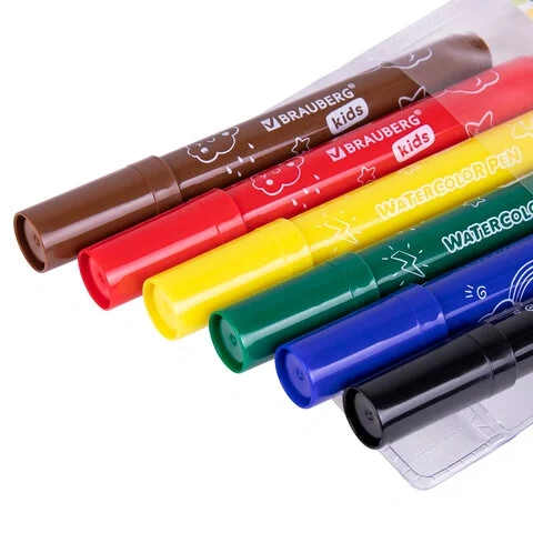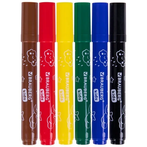 Фломастеры смываемые детские, противоударный наконечник, 6 цветов, BRAUBERG KIDS, ПВХ-упаковка с евр