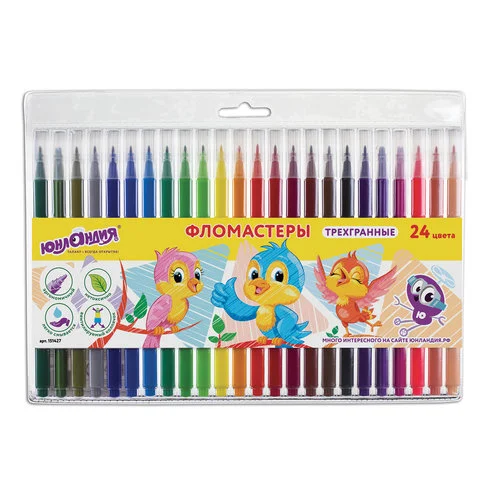 Фломастеры для рисования Юнландия Зоопарк 24 цвета, трехгранные, вентилируемый колпачок
