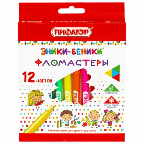 Фломастеры для рисования Пифагор Эники-Беники 12 цветов, вентилируемый колпачок