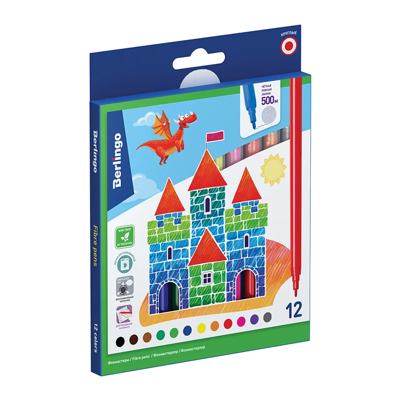 Фломастеры для рисования Berlingo Замки 12 цветов, смываемые, с магнитной закладкой