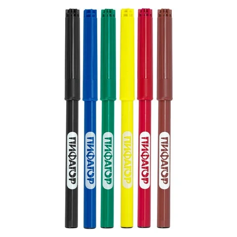 Фломастеры для рисования Пифагор 6 цветов, вентилируемый колпачок