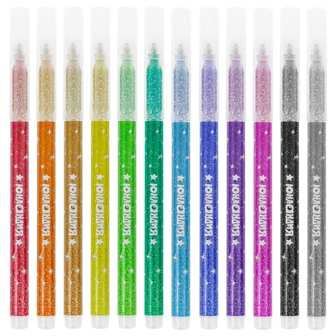 Фломастеры с блестками ЮНЛАНДИЯ 12 цветов, 'ЮНЫЙ ВОЛШЕБНИК', ударопрочный наконечник, вентилируемый