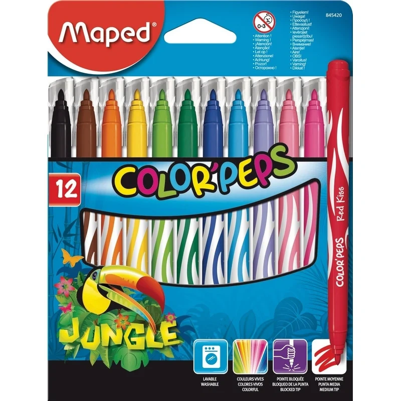 Фломастеры для рисования Maped Jungle 12 цветов, смываемые