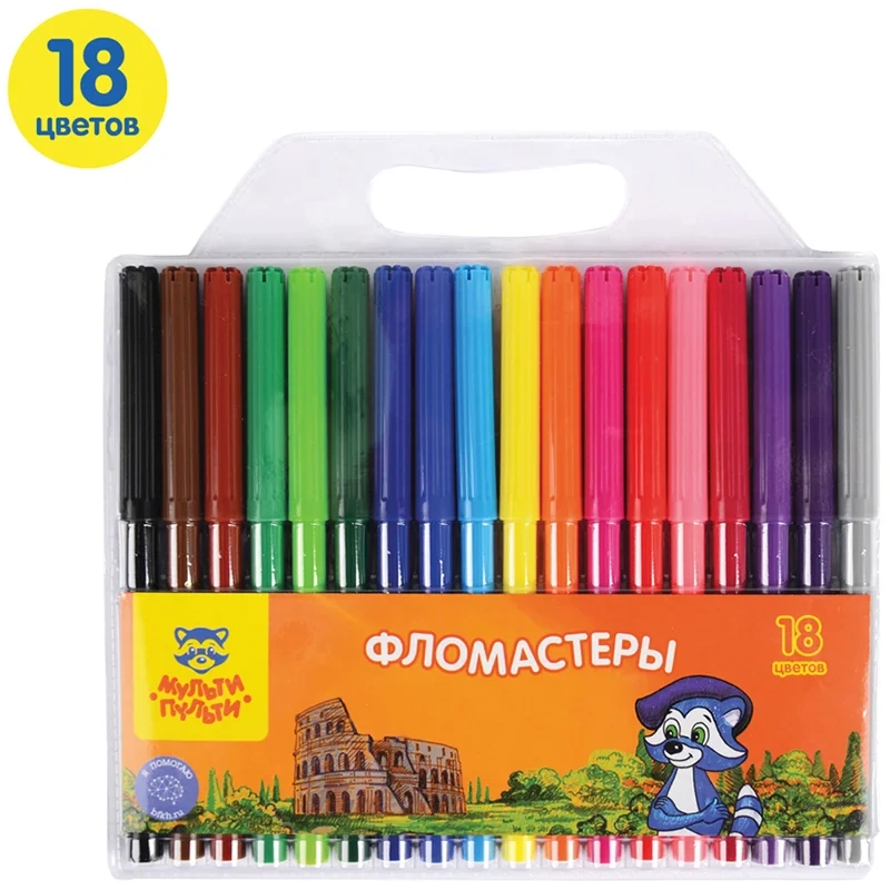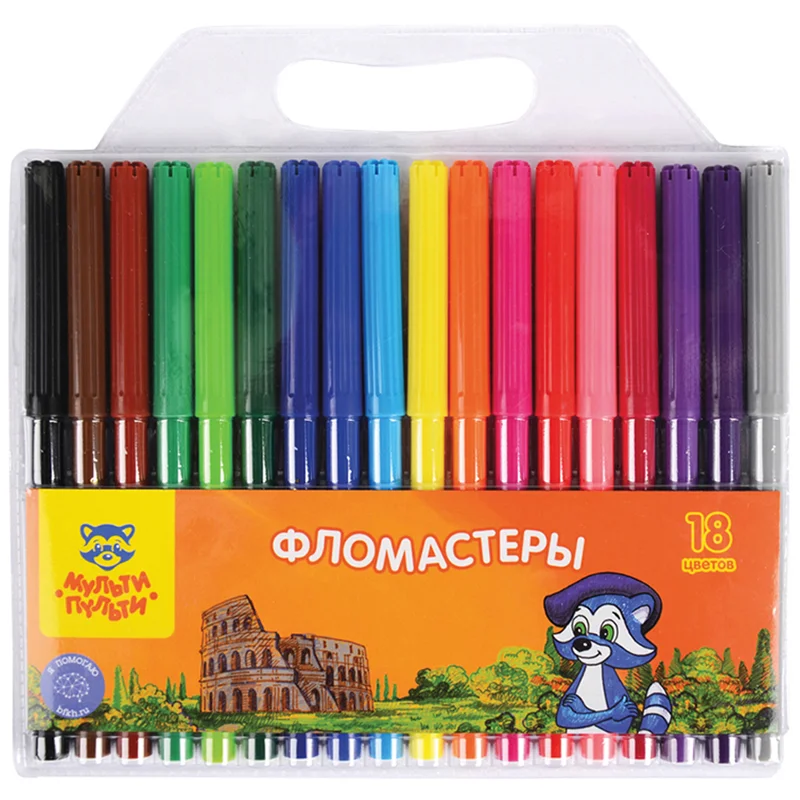 Фломастеры Мульти-Пульти 'Енот в Италии', 18цв., смываемые, блистер