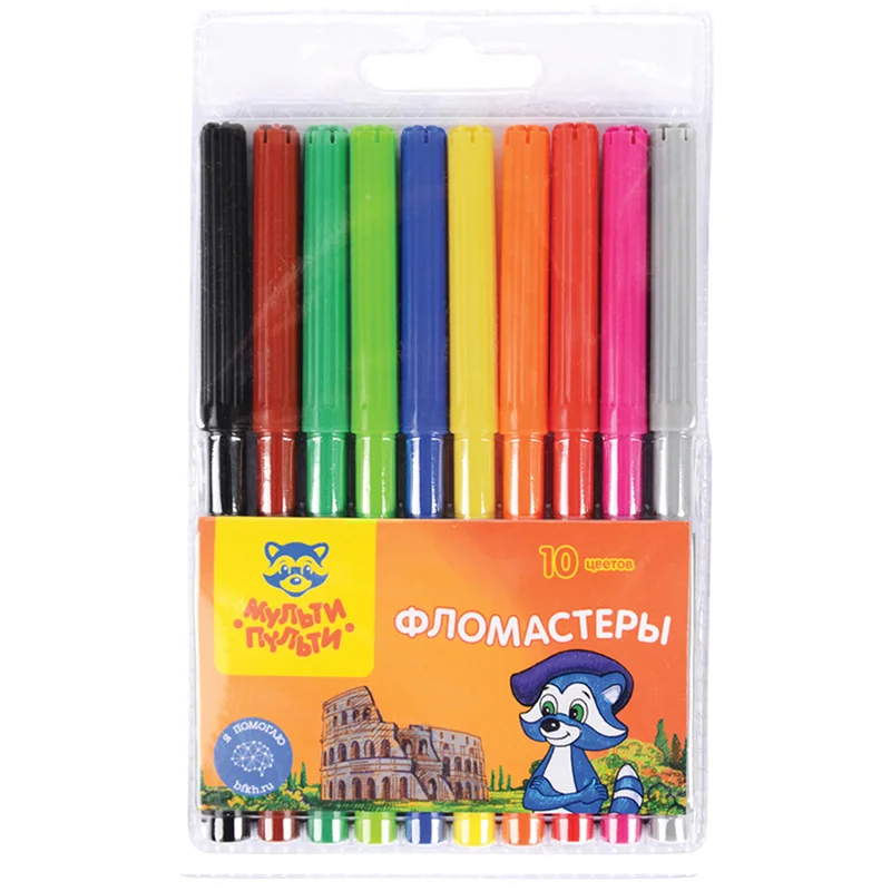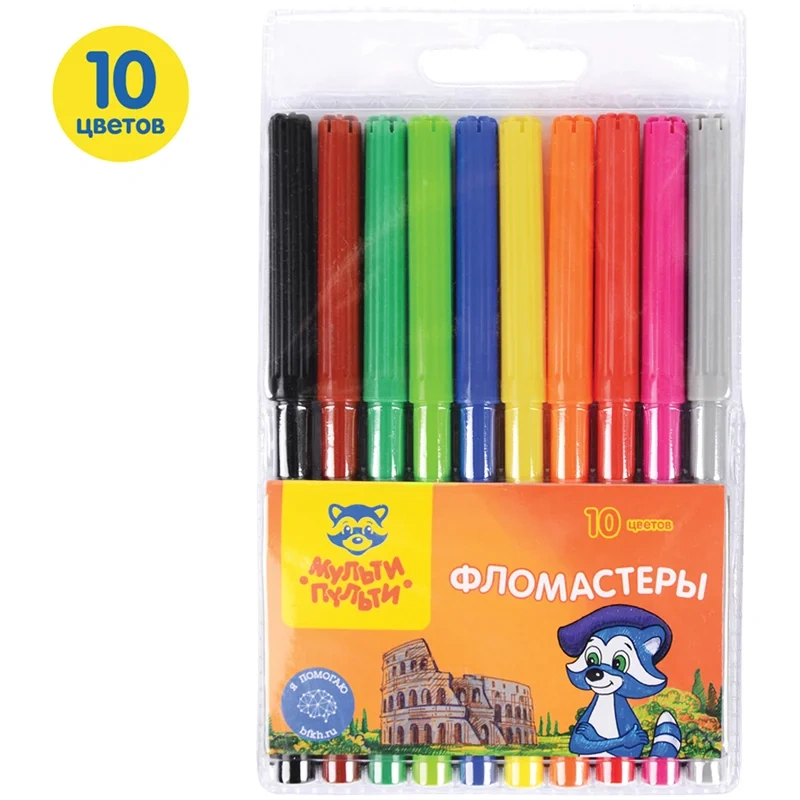 Фломастеры Мульти-Пульти 'Енот в Италии', 10цв., смываемые, блистер