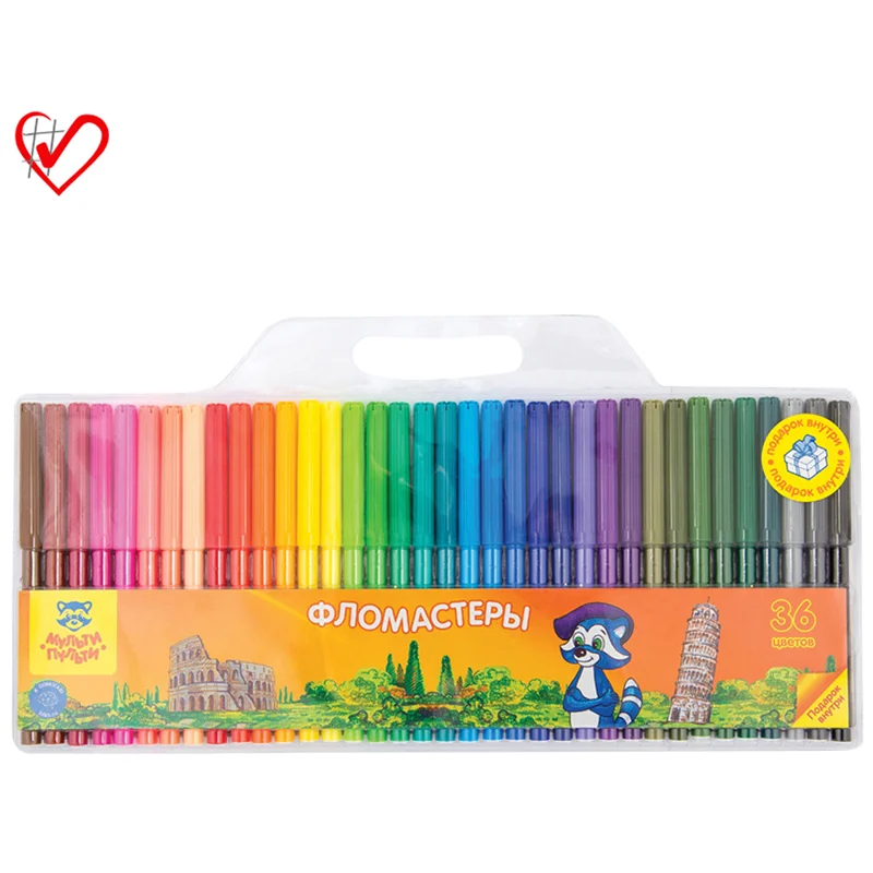 Фломастеры Мульти-Пульти 'Енот в Италии', 36цв., смываемые, блистер