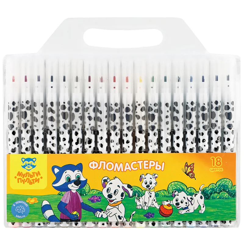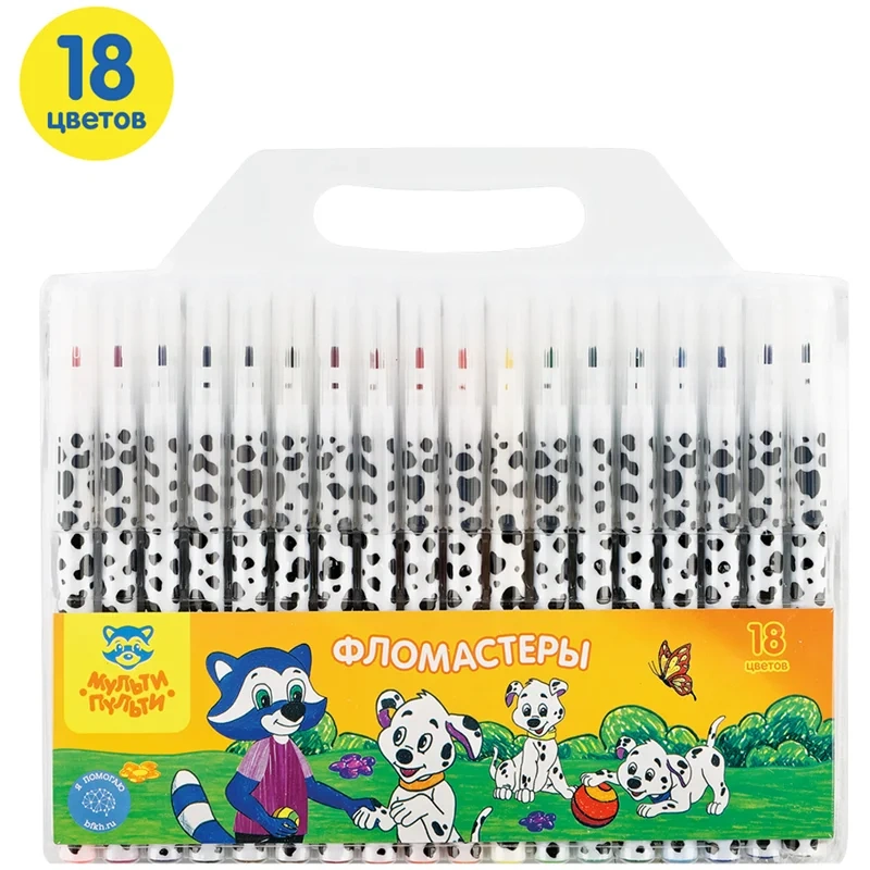 Фломастеры Мульти-Пульти 'Енот и далматинцы', 18цв., смываемые, блистер