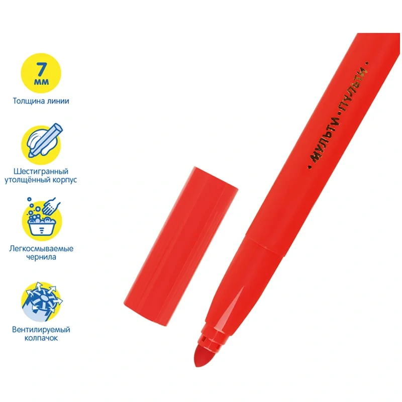 Фломастеры Мульти-Пульти 'Енот в Англии', 06цв., утолщенные, смываемые, картон, европодвес