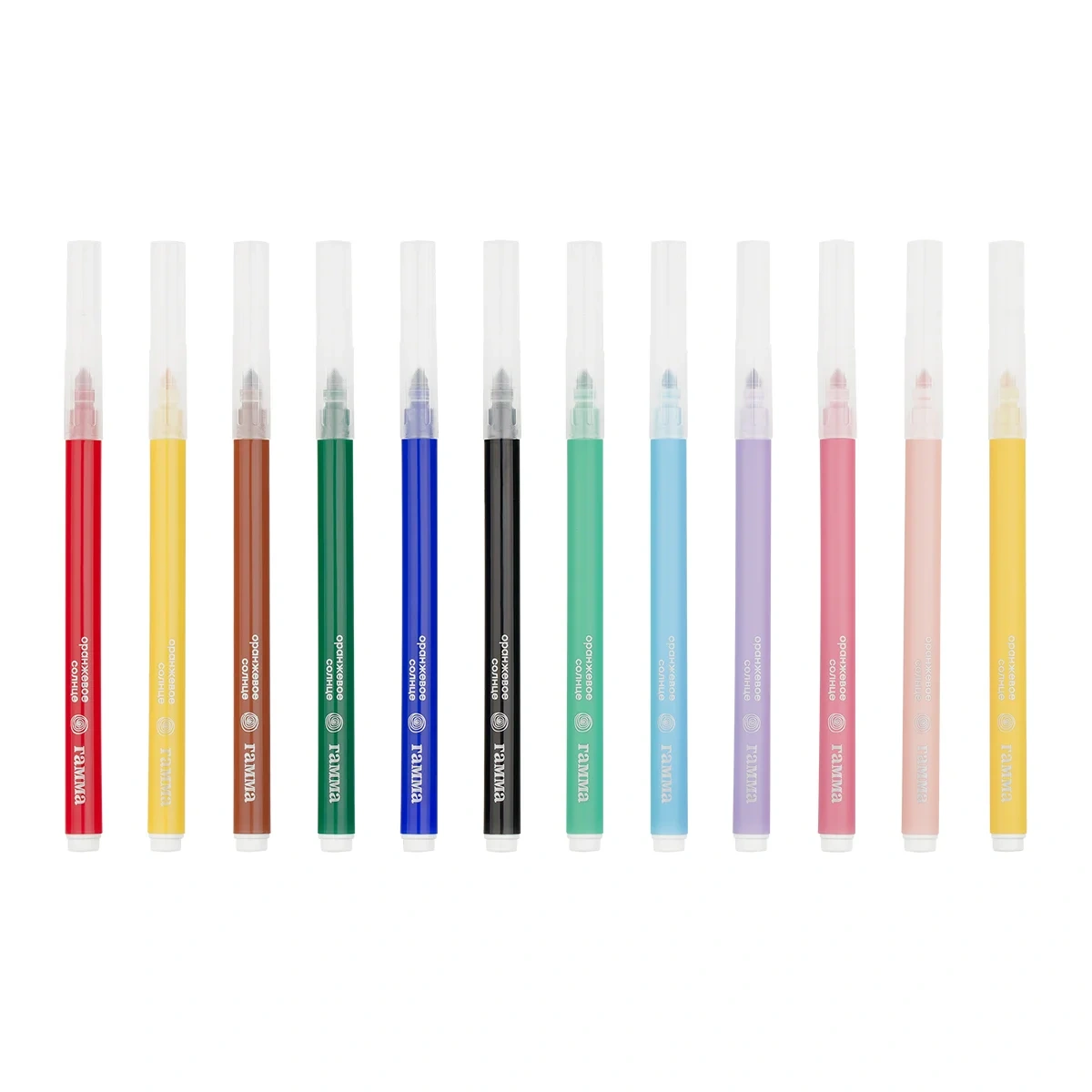 Фломастеры Гамма 'Оранжевое солнце', 12цв.(6 обычных + 6 пастельных цветов), 12шт., смываемые, карто