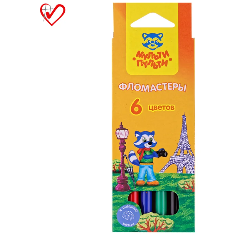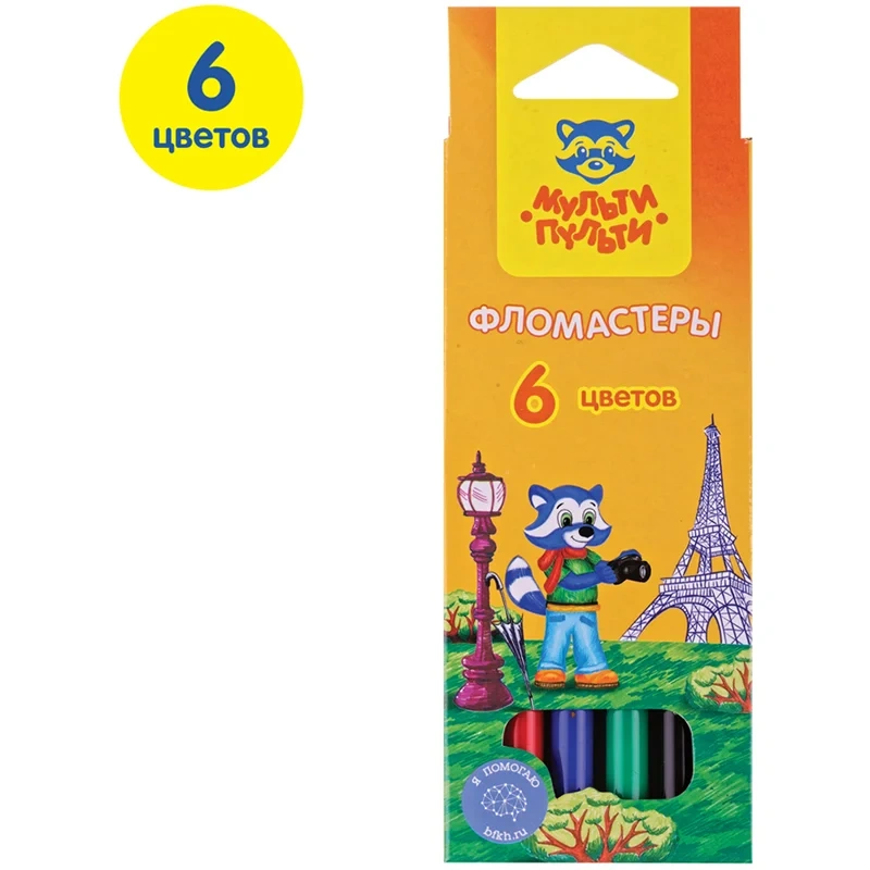 Фломастеры Мульти-Пульти 'Енот во Франции', 06цв., смываемые, картон, европодвес