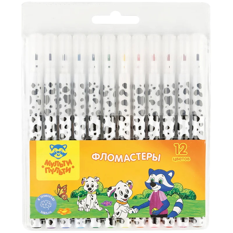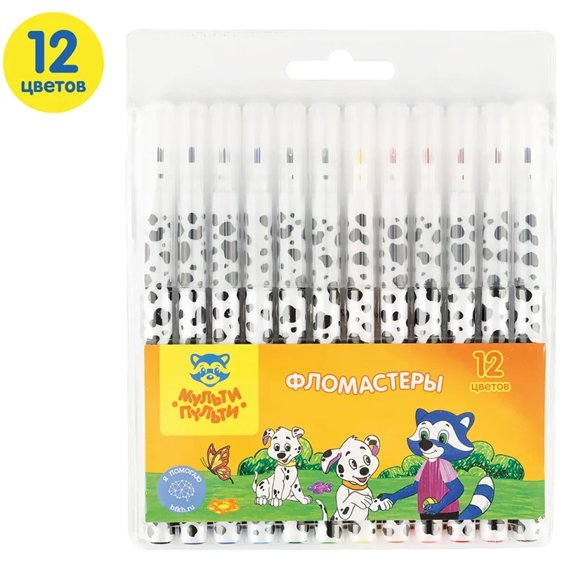 Фломастеры Мульти-Пульти 'Енот и далматинцы', 12цв., смываемые, блистер