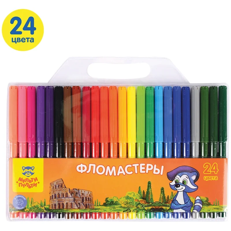 Фломастеры Мульти-Пульти 'Енот в Италии', 24цв., смываемые, блистер