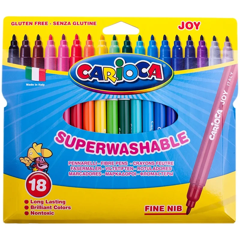 Фломастеры для рисования Carioca Joy 18 цветов, смываемые, европодвес