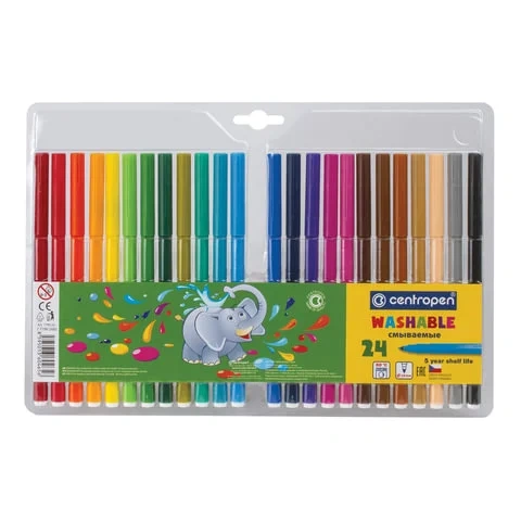 Фломастеры для рисования Centropen Слонята 7790 24 цвета, смываемые