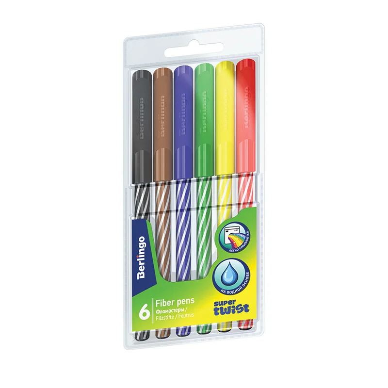 Фломастеры для рисования Berlingo SuperTwist 6 цветов, смываемые