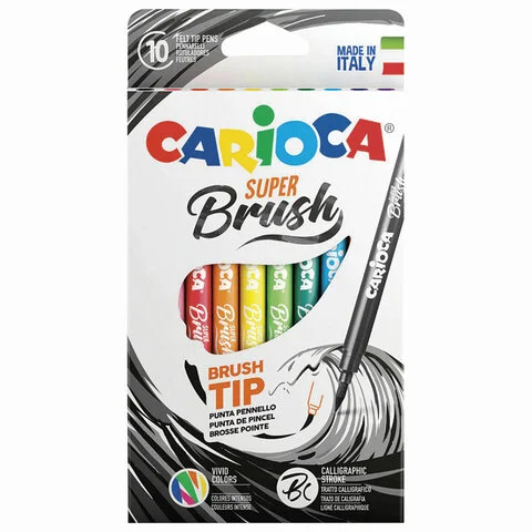 Фломастеры с наконечником-кистью CARIOCA (Италия) 'Super Brush', 10 цветов, смываемые, 42937