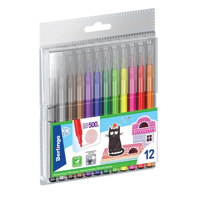 Фломастеры для рисования Berlingo Жил-был кот 12 цветов, смываемые