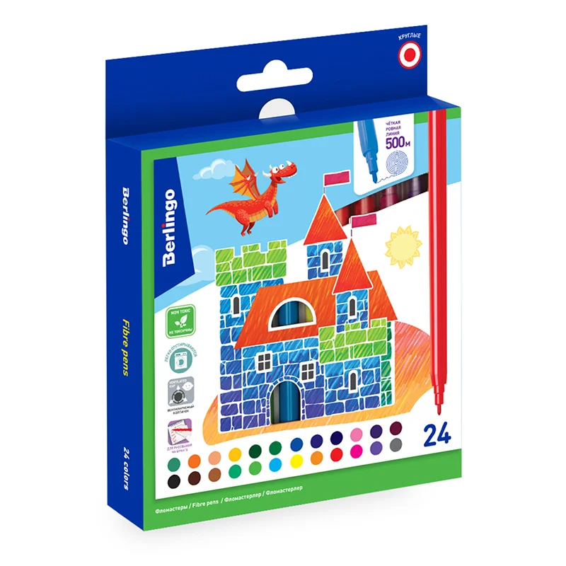 Фломастеры для рисования Berlingo Замки 24 цвета, смываемые, с магнитной закладкой