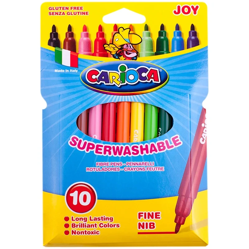 Фломастеры для рисования Carioca Joy 10 цветов, смываемые, европодвес