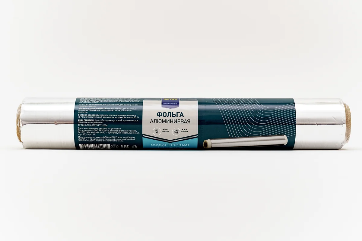 METRO PROFESSIONAL Фольга 14 мкрн, 290 мм — идеальный помощник в кулинарии. Эта фольга, превосходно подходящая для домашних и профессиональных нужд, обладает длиной 50 метров и шириной 290 мм, обеспечивая широкие возможности в использовании. С высокой плотностью в 14 микрон она сохраняет форму даже при экстремальных температурах. Идеальное решение для кулинарии: эта алюминиевая пищевая фольга идеально подходит для упаковки, запекания и хранения продуктов. С ее помощью можно сохранять свежесть, аромат и вкус блюд на долгое время. Она удобна и безопасна для использования в печах и микроволновых печах. Ключевые характеристики: — Высокое качество. Фольга METRO PROFESSIONAL обеспечивает надежную защиту продуктов. — Универсальность применения. Подходит для широкого спектра кулинарных задач – от приготовления закусок до запекания блюд. — Удобный рулон. Ее длинный рулон делает использование удобным и экономичным. Состав: алюминиевая фольга — безопасный и натуральный материал, идеально подходящий для контакта с пищей. Когда использовать. Отличный выбор для хранения остатков блюд, упаковки кулинарных произведений или для приготовления пищи на гриле или в духовке.