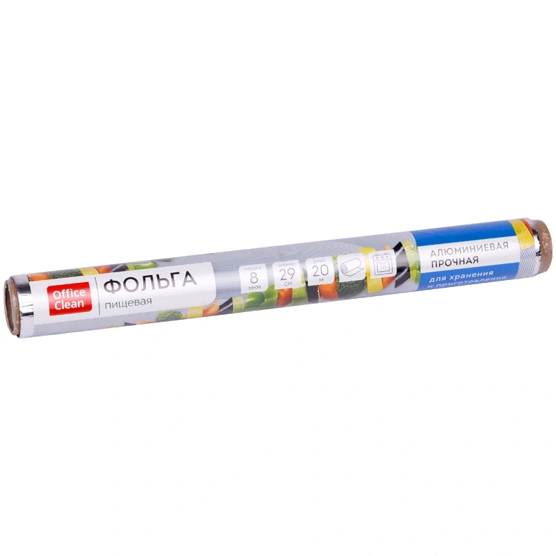 Фольга пищевая OfficeClean, прочная, 29см*20м, в рулоне, выполненная из алюминия, предназначена для приготовления блюд в духовых шкафах различных типов, на углях. Фольга OfficeClean обладает необходимой толщиной, что гарантированно позволяет ей выдержать любые температурные режимы духового шкафа. Продукты не пригорают и не прилипают. Безопасна при контакте с пищевыми продуктами, не токсична, сохраняет свежесть и вкус продуктов.